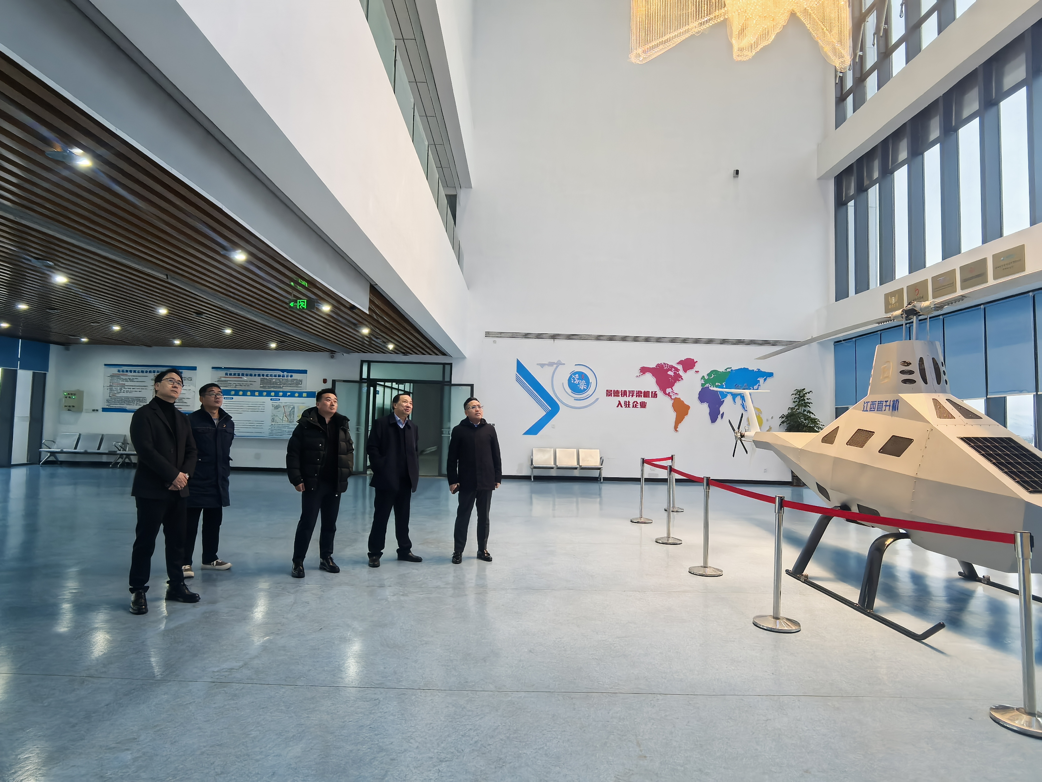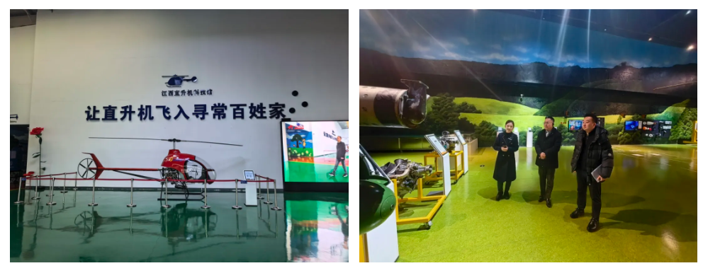 上午,在江直公司總經(jīng)理徐大淼的帶領(lǐng)下仁歌集團(tuán)董事長(zhǎng)黃志強(qiáng)、仁歌文旅公司董事長(zhǎng)胡大海、仁歌集團(tuán)浙江省辦事處主任毛啟青一行前往景德鎮(zhèn)浮梁機(jī)場(chǎng)進(jìn)行實(shí)地調(diào)研。詳細(xì)了解了機(jī)場(chǎng)的運(yùn)營(yíng)模式、通航產(chǎn)業(yè)發(fā)展現(xiàn)狀及未來(lái)規(guī)劃。下午,一行人來(lái)到江西直升機(jī)科技館進(jìn)行參觀,詳細(xì)了解了直升機(jī)的發(fā)展歷史、飛行原理等科普文化。