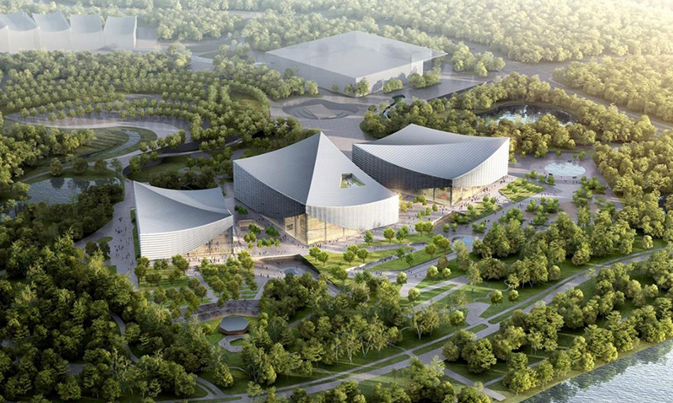 該項(xiàng)目位于北京城市副中心綠心森林公園西北角,建筑面積約為12.5萬(wàn)平方米,包含歌劇院、音樂(lè)廳、戲劇場(chǎng)、露天劇場(chǎng)以及排練廳、藝術(shù)展廳等公共服務(wù)用房。